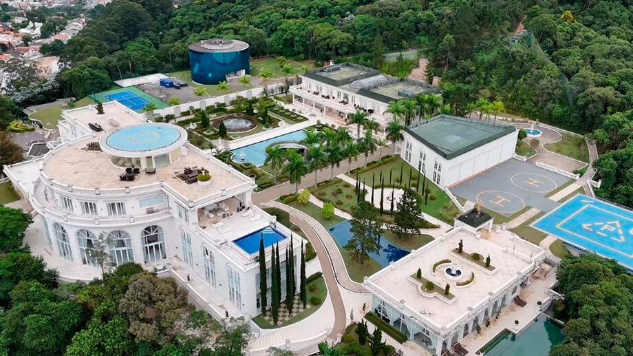 Localizada em Alphaville, na Grande São Paulo, a maior casa do Brasil reúne detalhes arquitetônicos e de engenharia que chamam atenção até mesmo no segmento de altíssimo padrão. A suíte máster, por exemplo, ocupa sozinha cerca de 1,2 mil m², área superior à de muitos edifícios residenciais, e conta com piscina privativa e heliponto exclusivo.