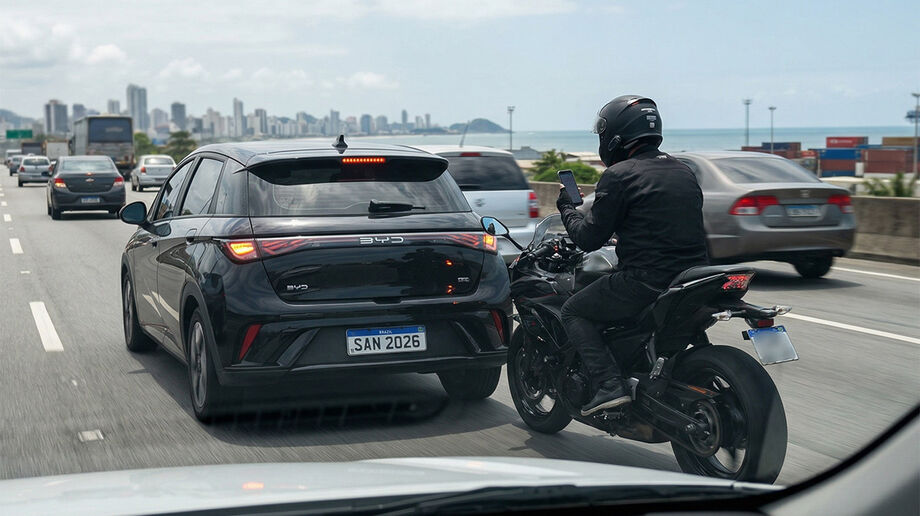 O sistema de segurança da BYD pode, em situações extremas, interpretar o risco iminente e acionar a frenagem autônoma de emergência, o que pegaria o motorista de trás totalmente de surpresa.
