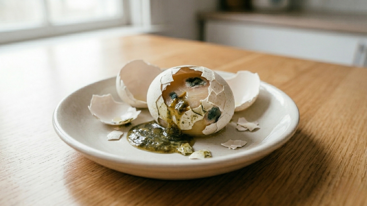 Se a superfície sob a casca estiver viscosa ou com um brilho incomum, se a gema estiver aguada ou quebradiça, ou se houver outras alterações visíveis na cor, o ovo deve ser jogado fora.