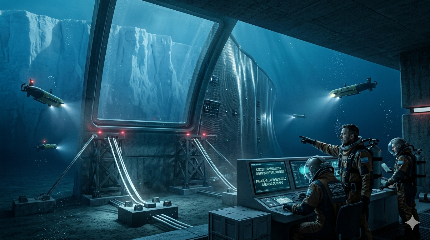 O plano de geoengenharia polar consiste em ancorar essa cortina gigante a 150 metros de profundidade para bloquear o avanço da água quente. O objetivo não é congelar o oceano, mas sim "ganhar tempo" para que a humanidade consiga reduzir as emissões de gases poluentes antes de um colapso total. Embora o projeto seja visto como uma esperança, ele carrega um custo astronômico, estimado entre 40 e 80 bilhões de dólares, além de desafios técnicos imensos em um dos ambientes mais hostis da Terra.