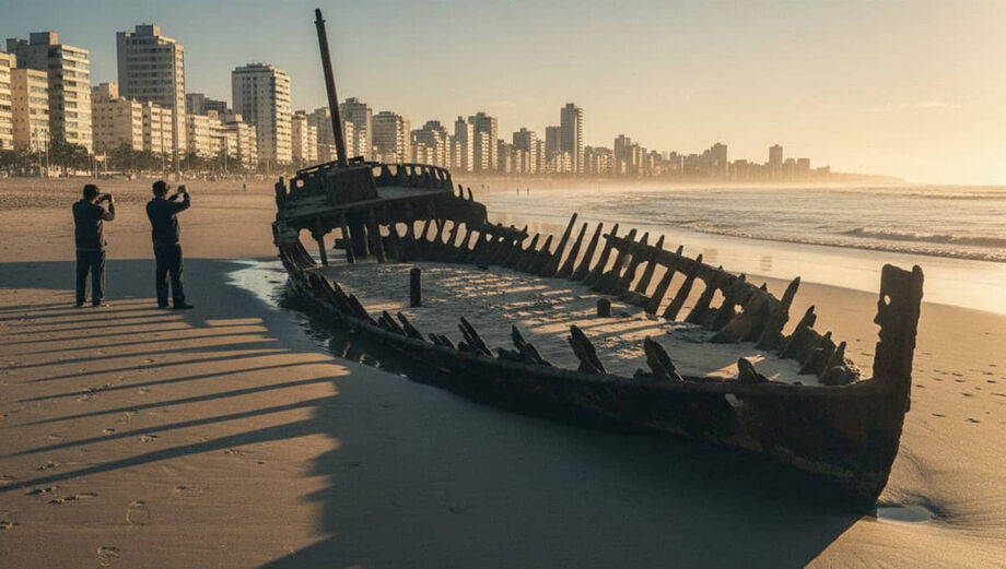 O cenário parece saído de um filme de ficção científica ou de um conto de piratas. Banhistas que caminhavam pela orla de Santos e Ilhabela nesta primeira semana de fevereiro de 2026 foram surpreendidos por uma visão rara: carcaças de ferro e madeira, antes submersas e esquecidas, emergiram das águas.