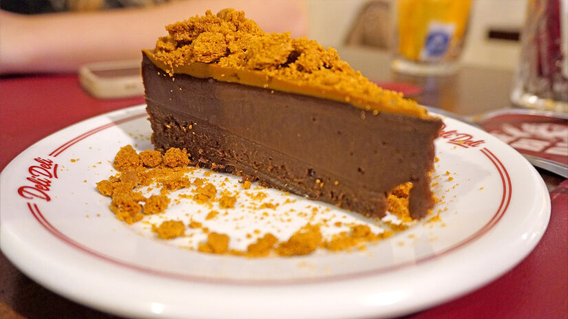As sobremesas chamam a atenção por serem diferentes. A Banana Nevada se destaca com uma torta de chocolate branco gratinado, assada na hora, por R$ 42,90. Já a Torta Biscoff traz uma combinação de chocolate com creme de biscoff, finalizada com pedaços do próprio biscoito.