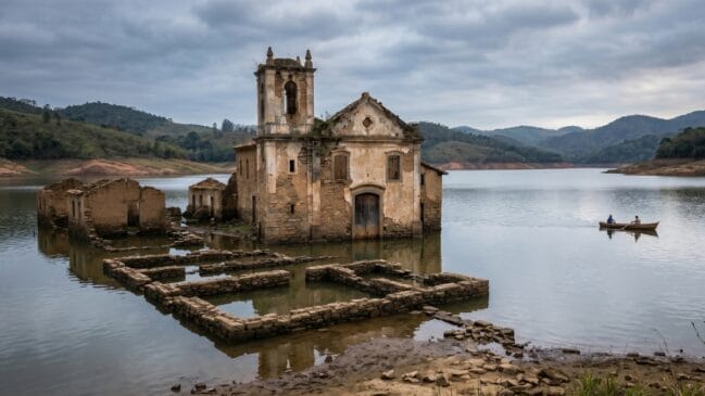 Hoje, as ruínas dessa cidade fantasma em São Paulo atraem mergulhadores e curiosos que buscam observar o espetáculo melancólico e fascinante de uma civilização “congelada” no fundo de uma represa.