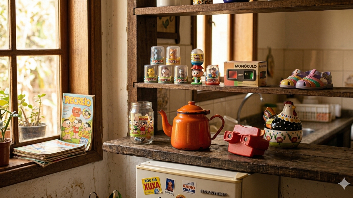 A nostalgia não é apenas um sentimento, mas um mercado em plena expansão. Se você viveu os anos 90, provavelmente se lembra de itens que eram onipresentes nas casas brasileiras: o copo de vidro que vinha com requeijão, os bules de ferro na chapa do fogão ou os pequenos visores de fotos coloridos.