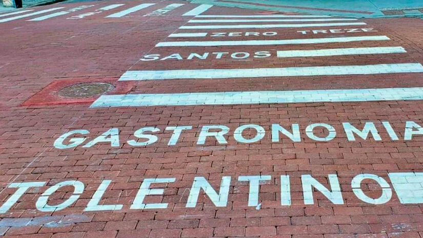 Com 400 metros de extensão e 15 estabelecimentos, a Tolentino ganhou projeto urbano exclusivo: calçadas com mosaico português, mobiliário de descanso, floreiras, postes temáticos e até um semáforo com ícones de garfo e faca.
