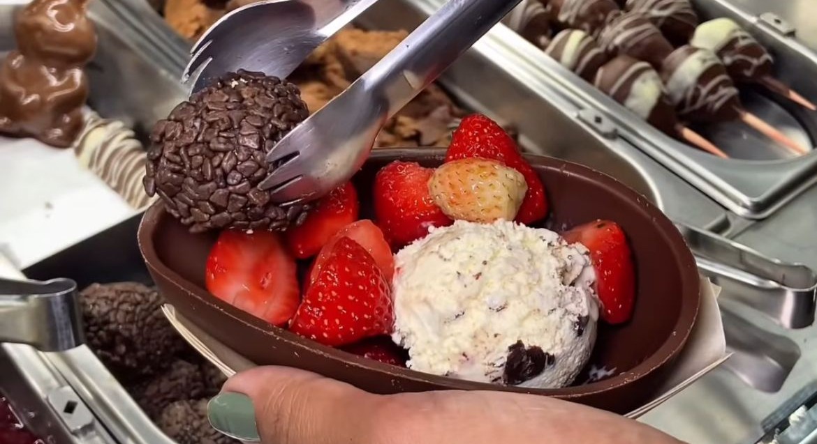 O tentador rodízio fica na Mundo di Chocolate, no piso térreo do Shopping Praiamar, no bairro da Aparecida, em Santos. Lá você escolhe a casquinha do seu ovo de Páscoa (ao leite ou branco) e a recheia com uma infinidade de itens disponíveis.