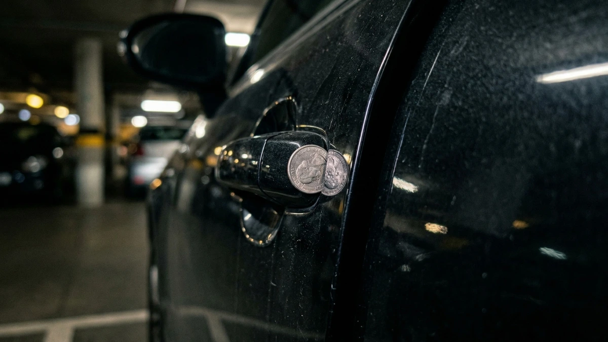 Criminosos usam uma simples moeda na maçaneta para impedir o travamento das portas. Entenda o golpe e veja como proteger seu carro em estacionamentos
