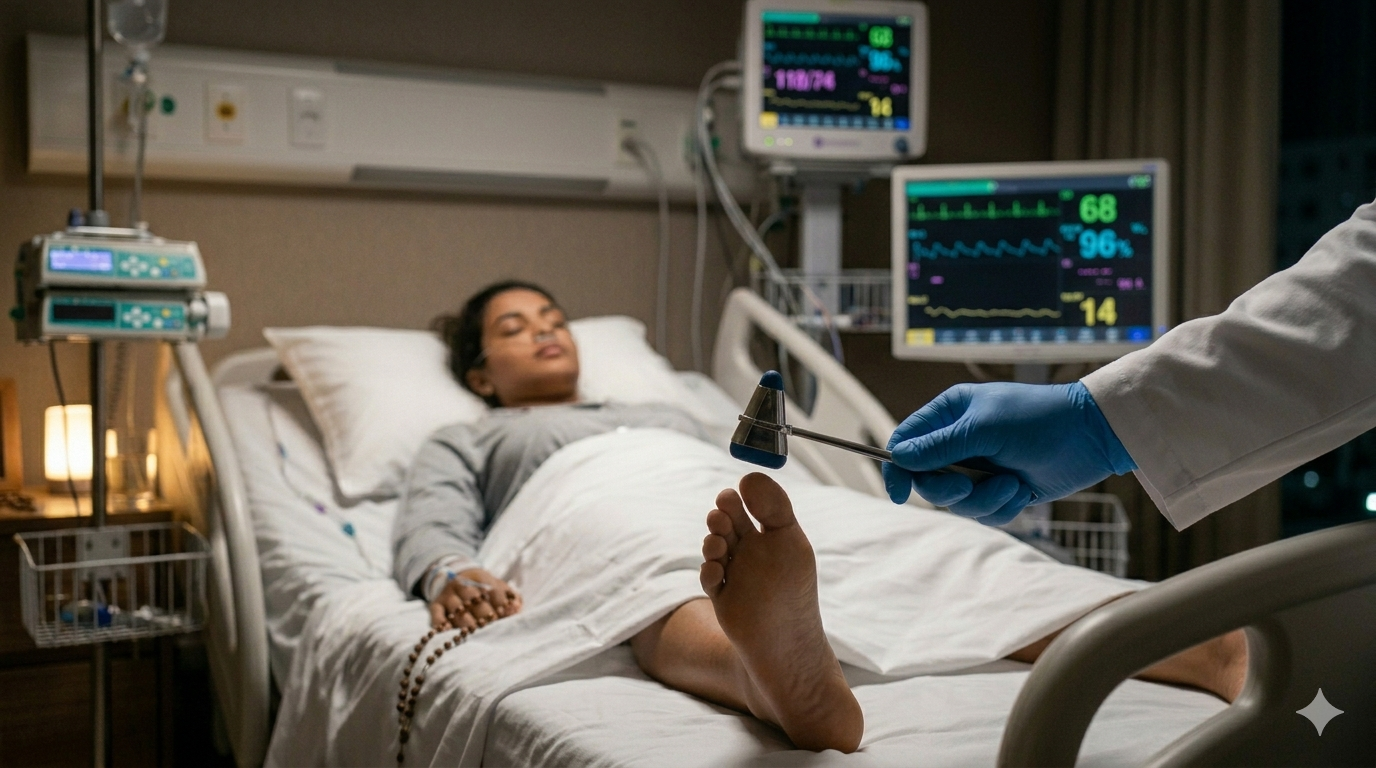 Médico faz testes de reflexo em paciente em coma - Imagem ilustrativa gerada por IA/GeminiQuando um médico avalia um paciente nessa condição, ele utiliza ferramentas padronizadas para entender o que está acontecendo. A mais famosa delas é a Escala de Coma de Glasgow.