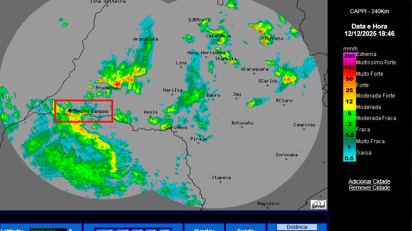 Além do tornado, o fim de semana foi marcado por chuvas volumosas no centro-oeste paulista. Segundo dados analisados pela Climatempo e informações do Ciiagro, os acumulados em 72 horas foram expressivos: