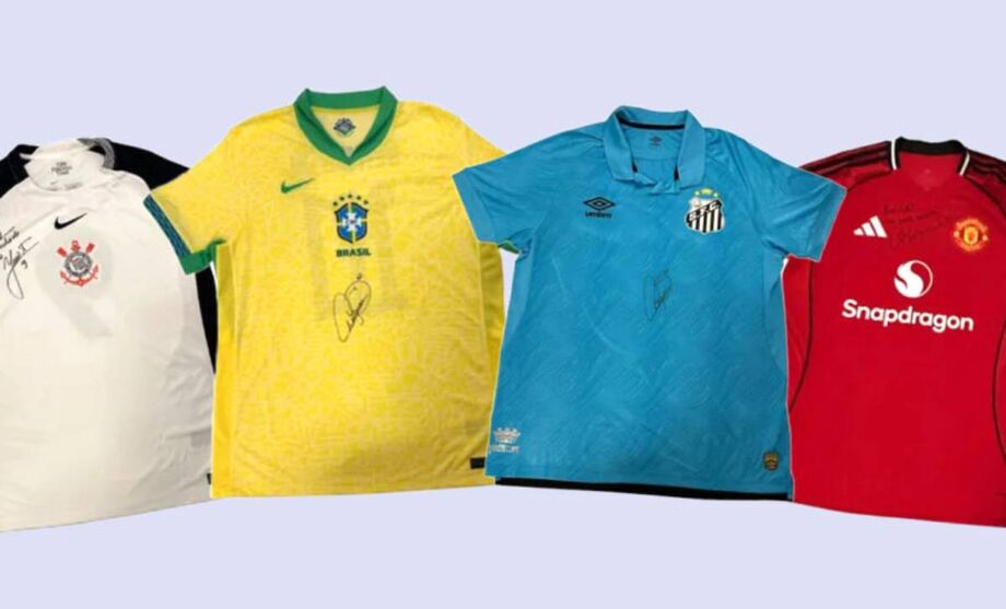 Ao todo, serão 30 itens leiloados, incluindo peças raras e únicas, como camisetas autografadas por jogadores, como Yuri Alberto (Corinthians) e Neymar (Santos).