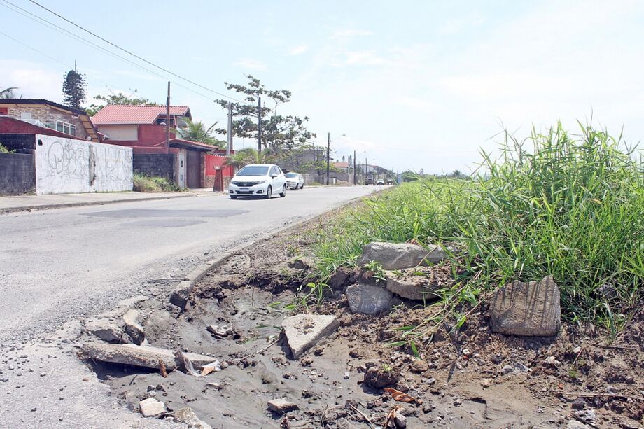 Mato alto, buracos enormes e constantes alagamentos causados pelas chuvas. Esse é o cenário que comerciantes e moradores enfrentam na avenida Mário Covas Júnior, na orla da praia, que se estende desde o bairro Cibratel II até o Jardim Grandesp, por cerca de 4,8 quilômetros, em Itanhaém.