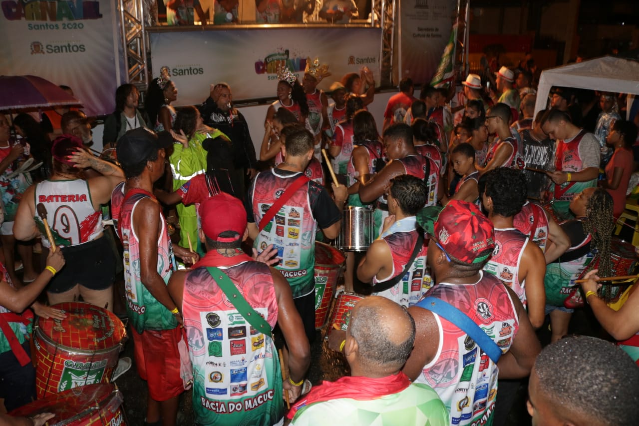 Após tumulto, Carnabanda reestreia com segurança reforçada e muita chuva em Santos