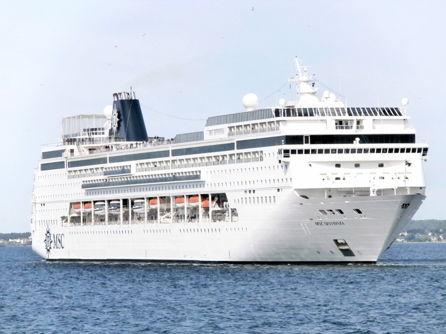 Trata-se do Sinfonia, da MSC, com capacidade para 2.679 passageiros e cerca de 700 tripulantes