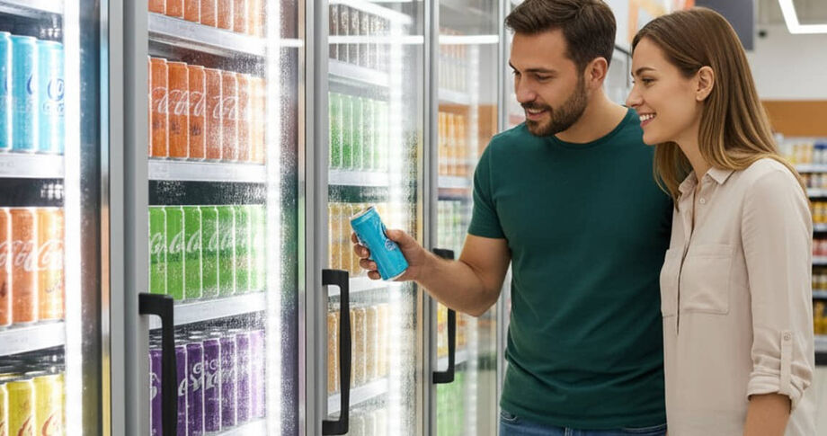 Casal escolhe sua marca de bebida favorita em supermercado / Imagem gerada por IA