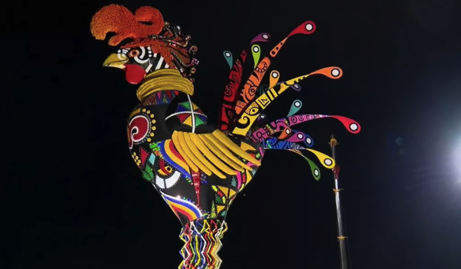 Alegoria gigante foi batizada de Galo Preto Ancestral, em homenagem aos povos negros e à cultura afro-brasileira