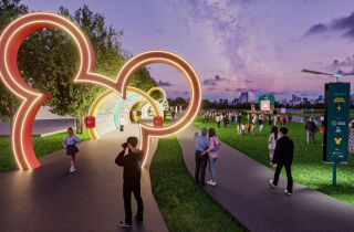 As estruturas do túnel de luz com arcos do Mickey Mouse e árvore de 35m dão forma à atração gratuita que promete ser inesquecível