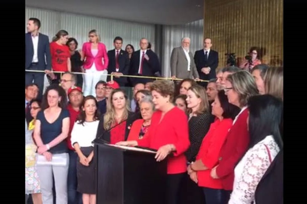 É o segundo golpe de estado que enfrento na vida. O primeiro, o golpe militar, apoiado na truculência das armas, da repressão e da tortura, me atingiu quando era uma jovem militante. O segundo, o golpe parlamentar desfechado hoje por meio de uma farsa jurídica, me derruba do cargo para o qual fui eleita pelo povo.
