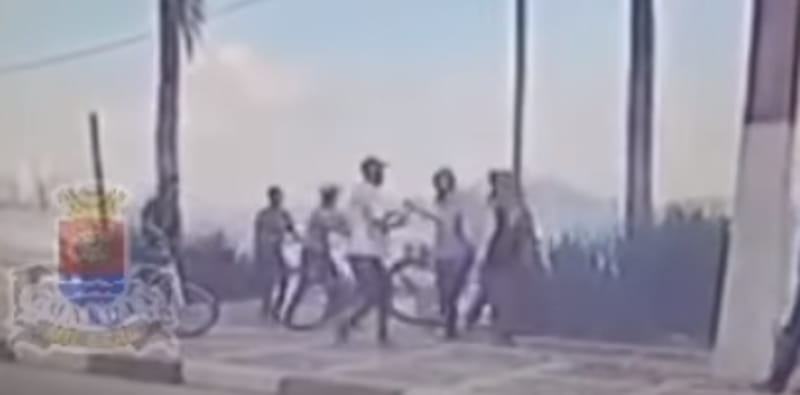 No vídeo é possível observar o grupo de assaltantes se aproximando das vítimas. Quatro estão de bicicleta e um está a pé. Eles tentam efetuar o primeiro assalto, aparentemente sem sucesso. Então, decidem voltar, agora três a pé e dois segurando as bicicletas, e roubam as vítimas, que ainda tentam se defender, mas sem sucesso
