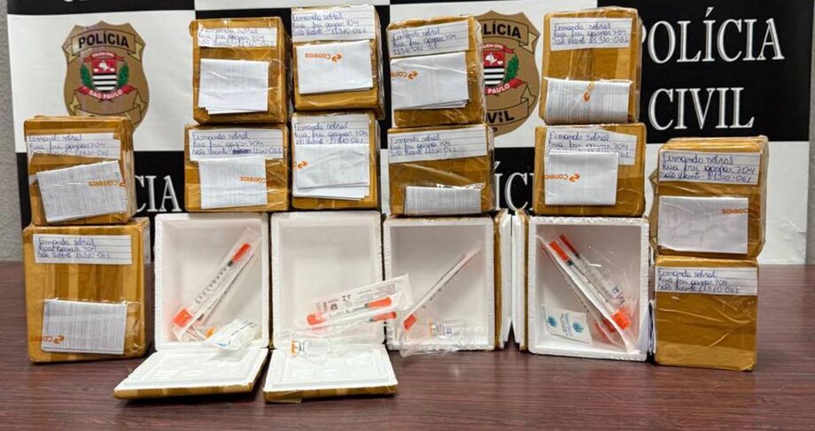 O material foi recolhido e encaminhado à delegacia para posterior perícia. Ao abrirem as embalagens, os policiais encontraram diversas unidades do medicamento Tirzepatida — conhecido comercialmente como Mounjaro —, de uso controlado, além de seringas e ampolas. No total, foram apreendidas 16 caixas, 17 ampolas e 15 seringas.