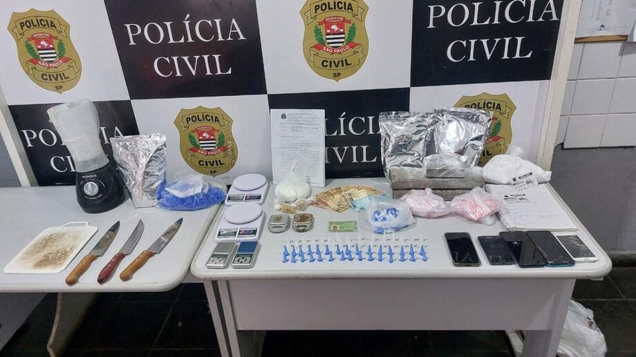 A ação também teve como resultado na apreensão de entorpecentes e materiais usados no preparo e venda de drogas / Divulgação/Polícia Civil