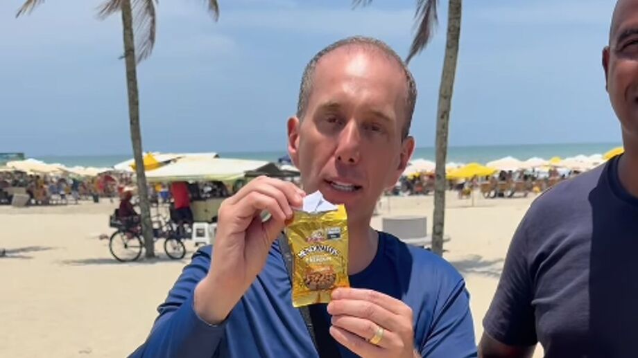 O prefeito afastado de Sorocaba (SP), Rodrigo Manga (Republicanos), gerou grande repercussão nas redes sociais neste domingo (23) após ser filmado vendendo amendoim em uma praia de Praia Grande, no litoral de São Paulo . O político, que está fora do mandato desde 6 de novembro por decisão judicial, apareceu nas imagens circulando entre turistas e segurando uma placa com chave PIX para vendas.