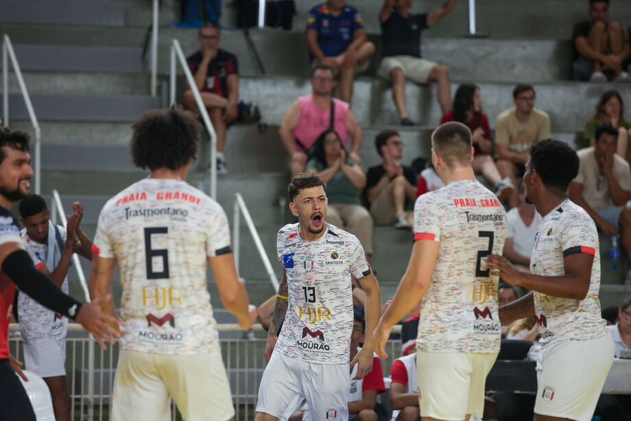 Embalada, a equipe deslanchou no terceiro set. Logo no início, abriu 6 a 1 no placar. Vinícius Salles, pelas pontas, e Thallyson Mosquito, pelo meio, foram decisivos, superando o bloqueio adversário e empolgando a torcida no Ginásio Rodrigão. Praia Grande fechou a parcial em 25/17, virando a partida para 2 a 1.