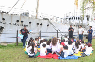 Estudantes vivenciam atividades interativas de ciência, história e literatura a bordo do Professor Wladimir Besnard