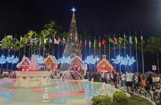 Decoração temática com infláveis gigantes, LED e árvore de 26 metros abre a temporada natalina em Santos