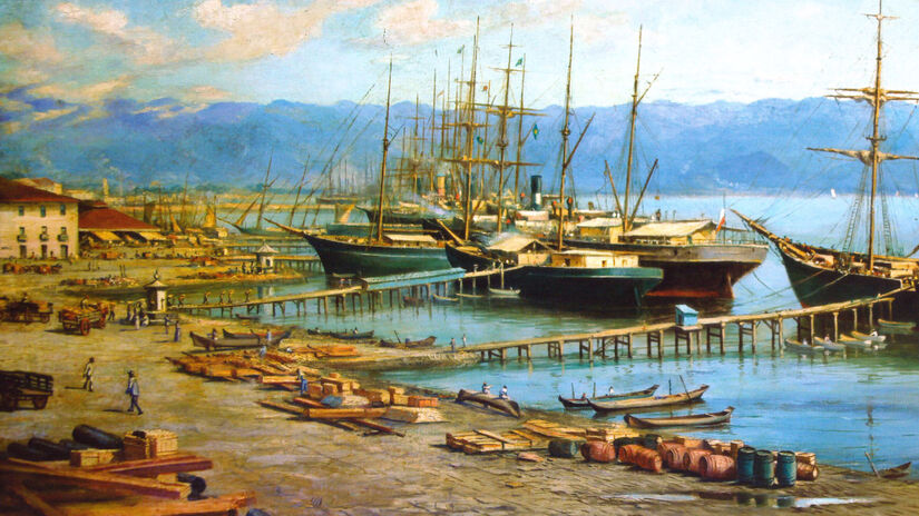 O Porto de Santos foi o canal por onde o "ouro negro" — o café — escoou para o mundo, transformando o Brasil.