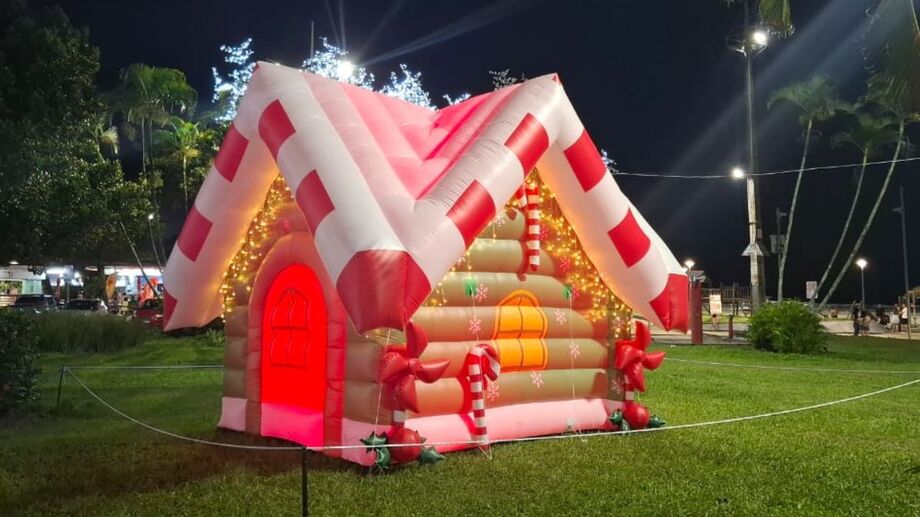 A Prefeitura de Santos informou, em nota, que as decorações natalinas instaladas nas casinhas da Vila Natalina, na orla do Gonzaga, foram desinfladas por causa da forte ventania que atingiu a cidade.