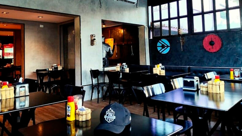 A decoração da hamburgueria é um capítulo à parte. Com armaduras, tronos, candelabros e elementos de castelo, o ambiente transporta os clientes para uma atmosfera medieval.