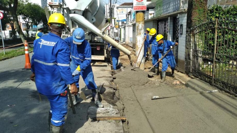 Uma terceira frente prossegue com os serviços de demolição de calçadas, guias e sarjetas do lado predial no trecho 4, com 334 metros de extensão entre João Caetano e Carlos Gomes, sentido Centro-praia, iniciados no último dia 9.