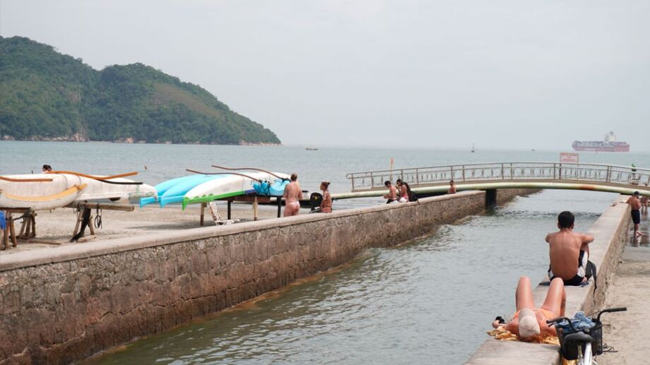 Esses resíduos milenares descem a serra e se depositam tanto na água quanto na areia, conferindo aquela coloração acinzentada característica que diferencia Santos de outras praias do litoral norte, por exemplo.