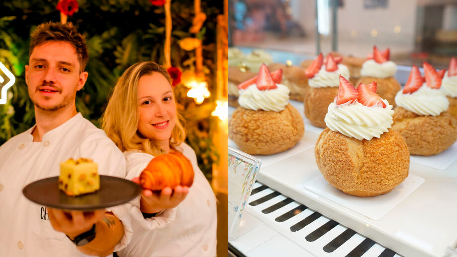 Por trás de uma vitrine nada óbvia, sem brigadeiro, bolos confeitados ou pudim, estão João Victor Guarnieri, 31 anos, e Natália Mora, 38, um casal que transformou sonhos, estudo e muita coragem em uma confeitaria francesa cheia de personalidade. Localizada na Rua Bahia, 80, no Gonzaga, em Santos, a Selavi Confeitaria & Café chama atenção pela decoração temática e pelo cheiro de manteiga, açúcar e café passado.