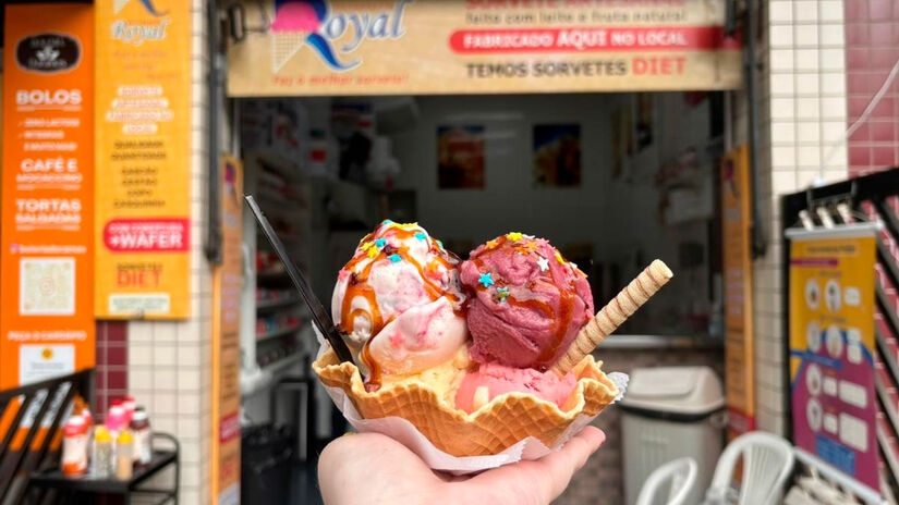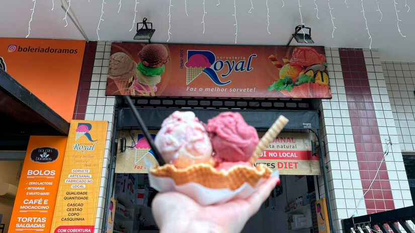 Praia e sorvete. Duas coisas que caminham de mãos dadas e refletem bem o que é a Sorveteria Royal. Localizada na Avenida Senador Pinheiro Machado, a um quarteirão da praia, o estabelecimento completa 70 anos em 2025 e segue como um dos pontos mais tradicionais de Santos. Desde 1955, diversas gerações já passaram por ali: avós que levaram os filhos, que depois levaram os netos. Todos em busca de uma casquinha, uma cestinha generosa ou de algum sabor especial.