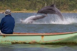 A prática tradicional em que pescadores e cetáceos cooperam na captura de tainhas foi registrada pelo Iphan