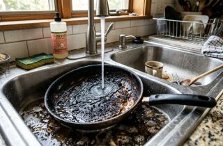 Este método caseiro usa água e sal para amolecer resÃduos queimados e facilitar a limpeza do fundo da panela