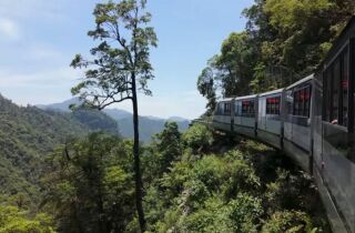 O Monte Dajue abriga hoje uma das obras mais audaciosas da engenharia moderna: um sistema de trilhos que desafia a percepção humana