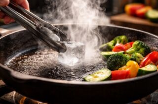 Técnica profissional utiliza o choque térmico para equilibrar o calor da panela e criar uma crosta crocante sem ressecar o interior dos vegetais