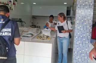 Fiscalização da Vigilância Sanitária encontrou falhas de higiene e conservação em peixarias durante operação da Prefeitura de Guarujá
