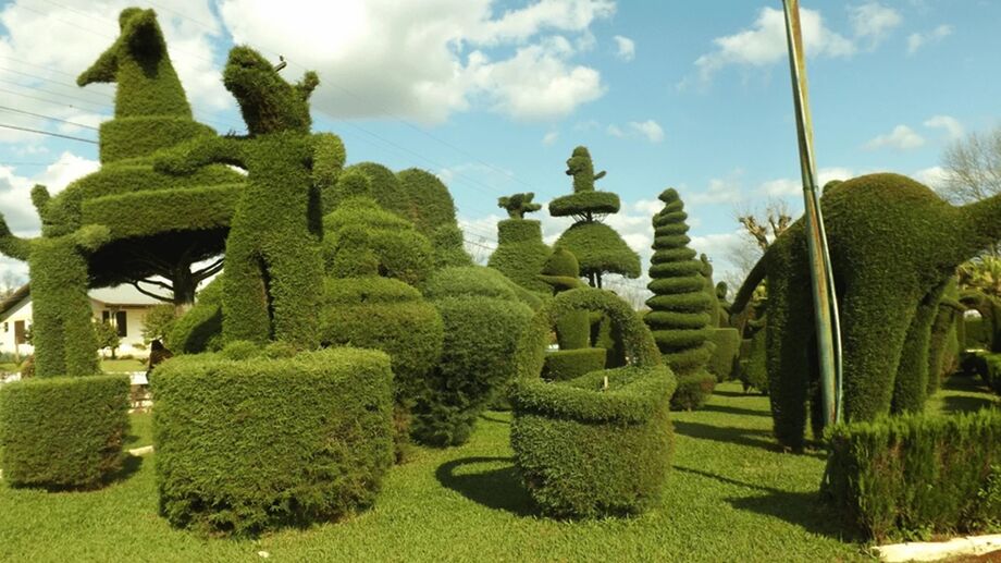 A principal vitrine dessa arte é a Praça Tancredo Neves. Ali, os ciprestes deixaram de ser apenas árvores para assumir formas humanas, de animais, personagens folclóricos e monumentos.