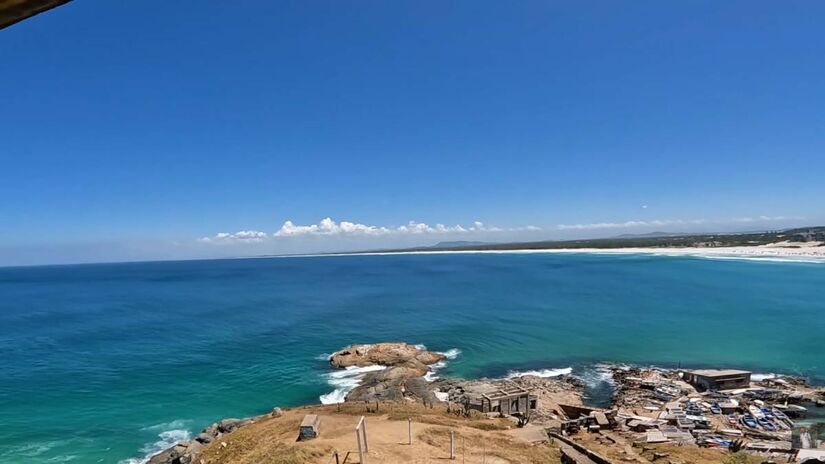 Além da água fria, a Praia Grande chama atenção pela paisagem. A longa faixa de areia clara contrasta com o mar em tons de azul-esverdeado, formando um cenário marcante. Ao redor, falésias e formações rochosas ajudam a compor um dos visuais mais impressionantes da Região dos Lagos.