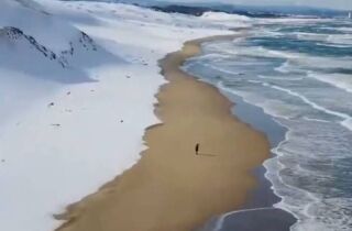 As imagens que circulam nas redes sociais impressionam internautas de diferentes países. As nuances entre o branco da neve, o bege da areia e o brilho do sal criam um degradê natural que parece obra de computador
