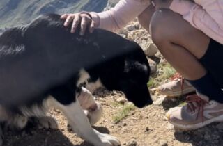 Sem conseguir andar e ferido, o pobre animalzinho foi carregado nas costas por socorristas em uma descida para lá de perigosa