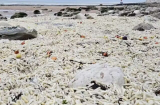 Centenas de milhares de batatas fritas cobriram o litoral de Sussex com uma camada de 75 centímetros