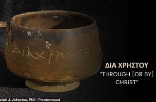 O objeto foi descoberto perto do sítio submerso de Antirhodos, onde historiadores acreditam que ficava o palácio de Cleópatra e contém a inscrição "DIA CHRSTOU O GOISTAIS"