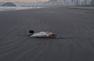 No conteúdo enviado à redação do Diário do Litoral, é possível estimar que o animal aquático pesava cerca de 70 quilos