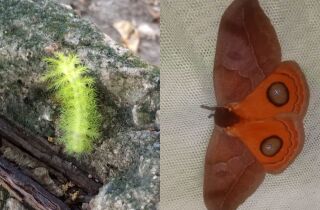 De acordo com especialistas, essa lagarta (Automeris illustris) pode queimar ao ser tocada, sendo frequente o relato de acidentes