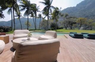 Cercada pela natureza e com acesso restrito, a residência ocupa uma posição privilegiada, com vista direta para o oceano