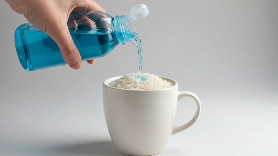 O arroz atua como um componente de limpeza suave, pois consegue esfregar as partes internas do recipiente sem causar danos ao vidro. Já o detergente quebra a gordura, reduz a tensão superficial da água e ajuda os grãos a carregarem a sujeira junto.